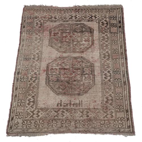 Antique Afghan Aqcha Small Wool Rug Tekke c.1928 (Dated 1347 AH Inscription) 3'11'x2'11" (119x89cm Handwoven Turkmen Ersari)