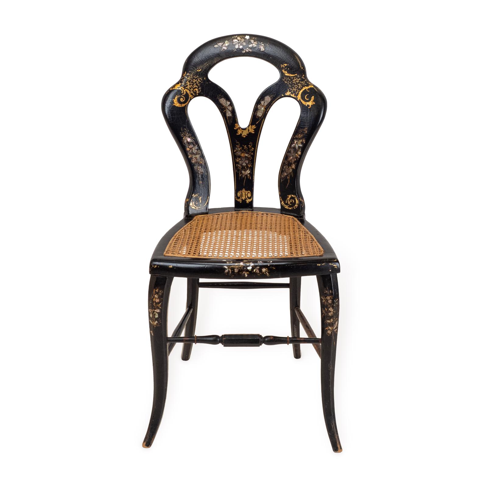 Japanned Chinoiserie Chair, Papier-mâché, with Mother-of-pearl Inlay, Regency Taste